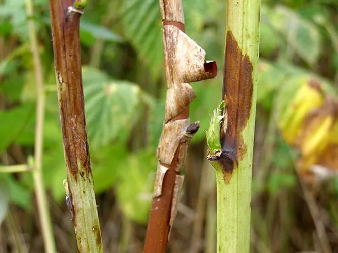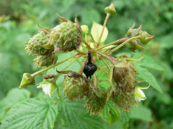 - В итоге у малины вянут и сохнут побеги, молодые побеги очень быстро погибают, причем наибольшие повреждения наблюдаются летом, на следующий год после заражения инфекцией. Если поражения образуются в нижней, надземной части побегов, последние легко могут сломаться.