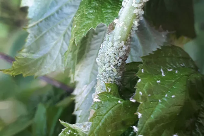 На малине встречается малиновая тля беловатого, желтого или светло-зеленого цвета. Она питается листьями и верхушками побегов, вызывая их усыхание. Чаще атакуют однолетние сорта («Поляна», «Полька»). Ранняя борьба с тлей на малине чрезвычайно важна, поскольку вредители являются переносчиками вирусов, вызывающих неизлечимые болезни. Поэтому проводим осмотр малины перед цветением.