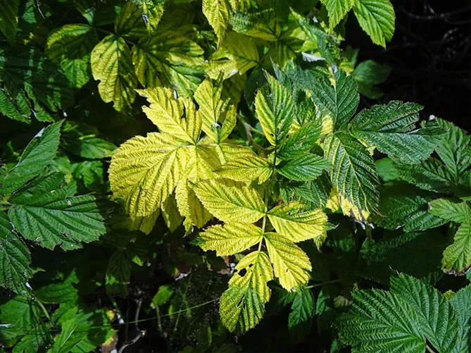 Устойчивы к хлорозу сорта малины: Колхозница, Русская урожайная. Сильно подвержены хлорозу сорта Мальборо, Усанка.