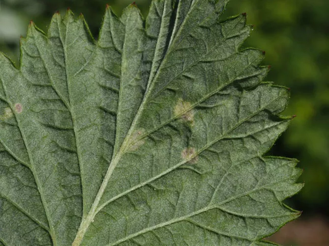 Эта болезнь листьев малины определяется по следующим симптомам: