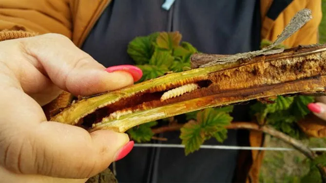 На плантациях малины, где в прошлом году заметили засыхание цветочных бутонов, внутри которых нашли гусениц, в этом году нужно подготовиться к борьбе.