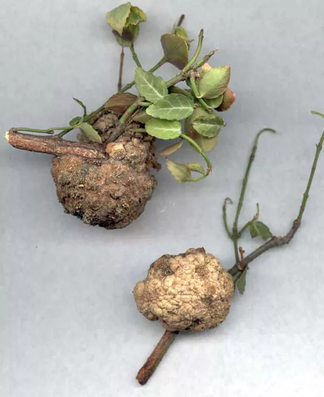 Особые признаки: иногда галлы могут иметь гладкую поверхность, из-за чего их трудно отличить от обычного разрастания у основания куста роз или от соединения прививок.