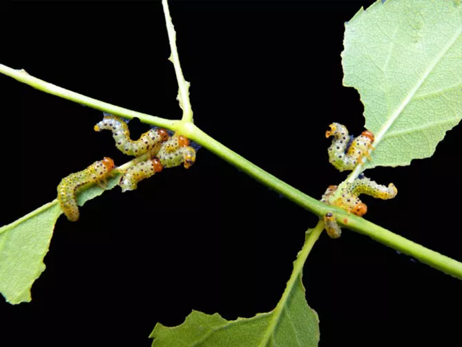 Светло-зеленые гусеницы с желтыми головками и черными пятнами поедают листья роз. На самом деле это ложные гусеницы — личинки насекомого Розанный пилильщик (Arge ochropus). Первая волна нападений приходится на май – июнь, вторая – летом.