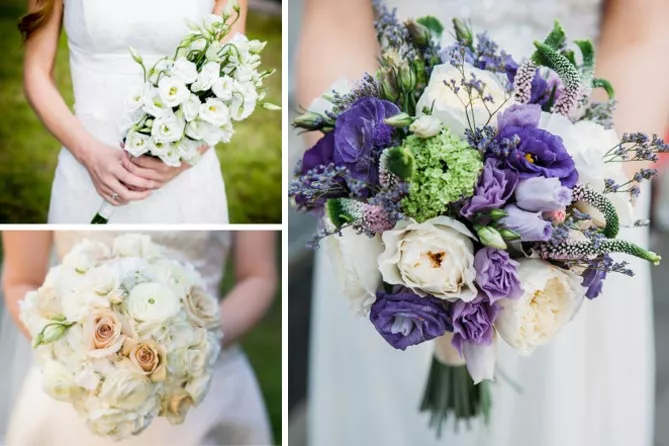 Эустома – уникальный цветок, украшающий свадебные букеты. Это безусловно самые популярные свадебные цветы последних лет. Наиболее распространены белые эустомы, сорта со слегка окрашенными краями. Заслуживает внимания также фиолетовая эустома, которая приятно контрастирует с вездесущими белыми свадьбами. Это прекрасные цветы для свадебных букетов не только из-за их эстетической ценности. Хотя растения выглядят очень деликатными, цветы чрезвычайно долговечны. Они хорошо выдержат всю ночь, и не нужно беспокоиться о том, что лепестки быстро увянут без воды.