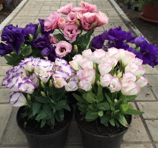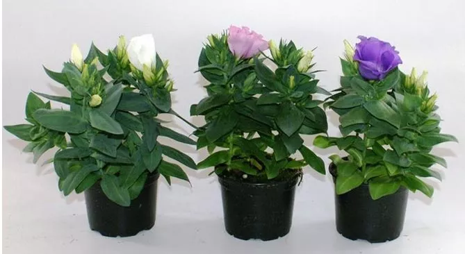 Эустома, подходящая для выращивания в горшке – относительно недавнее изобретение ботаников. Это карликовые сорта, адаптированные к изменяющимся погодным условиям, характеризующиеся более мелкими цветами и листьями. Они более устойчивы к болезням. Изначально карликовые эустомы имели только красный цвет, теперь часто встречается также фиолетовая эустома. В настоящее время деятельность селекционеров направлена не на выведение новых декоративных форм, а на повышение устойчивости растений к неблагоприятным условиям выращивания, вредителям.