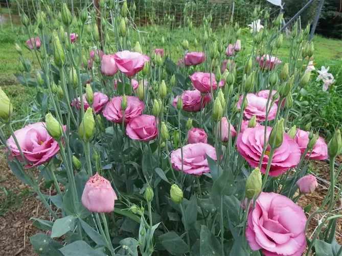 При выращивании эустомы для срезанного цветка необходима опорная конструкция. Однако не рекомендуется подвязывать побеги, тогда на ветвях образуется меньше цветов, а цветение задерживается.В теплицах эустому выращивают на специальной сетке.