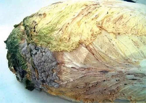 В конце вегетации и при хранении капусты возможно развитие симптомов серой плесени. Возбудитель развивается в широком диапазоне температур, в первую очередь, при хранении в течение длительного времени. Возбудитель вызывает быстрое старение капусты, поскольку стимулирует секрецию этилена.
