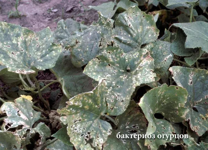 - угловатая пятнистость листьев или бактериоз огурцов (Pseudomonas syringae pv. lachrymans. (Shmith et Brayn));