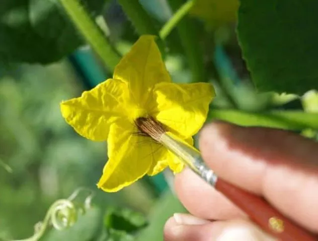 Внимание! При опылении важно отличать мужские цветы от женских. Сделать это можно по их основанию. У женских цветов в основании располагается небольшой огурчик.