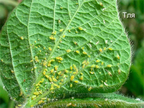 - Тля. Мелкое сосущее насекомое. Поражает побеги и листья.