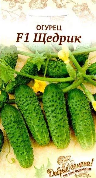 - Щедрик. Скороспелый. Огурчики небольшого размера, хрустящие с отменными вкусовыми характеристиками.