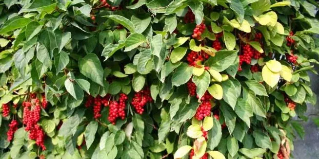 Schisandra chinensis – многолетний вьюн с целебными свойствами. Достигает высоты 12 метров, ежегодный прирост – 1 метр. Маленькие белые цветки, иногда с розовым или кремовым оттенком, появляются на рубеже мая-июня.