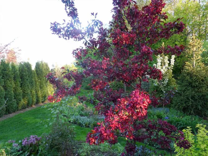Таким образом, мы получим красочную клумбу с яблоней ‘Royalty’ в главной роли.