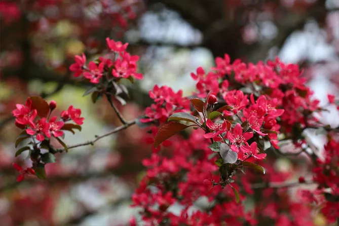 Когда есть место, декоративные яблоньки, посаженные большой живой изгородью на берегу пруда или по краю дорожки, создают довольно волшебную картину весной и осенью благодаря своим роскошным краскам.