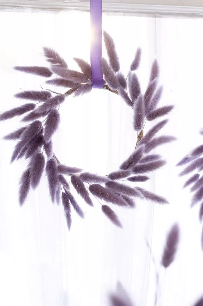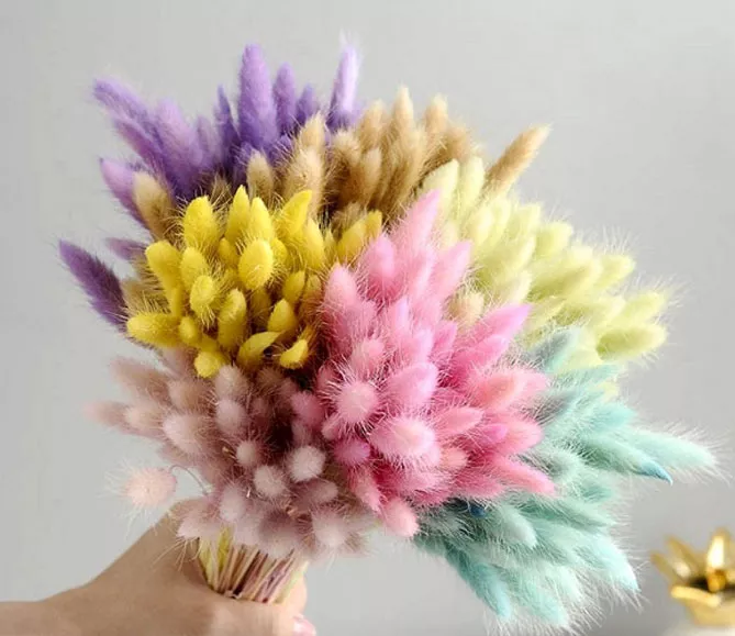 Если нужно добавить немного цвета, чтобы украсить интерьер, можно окрасить соцветия лагуруса. Налейте воду в стакан и добавьте пищевой краситель любого оттенка. Используйте краситель по инструкции на этикетке. Окуните цветок в воду в течение 10 секунд, проверив, что все лепестки пропитаны. Удалите цветок из воды, дайте высохнуть в течение 24 часов. После этого поместите цветы в прозрачную бутылку, вазу.